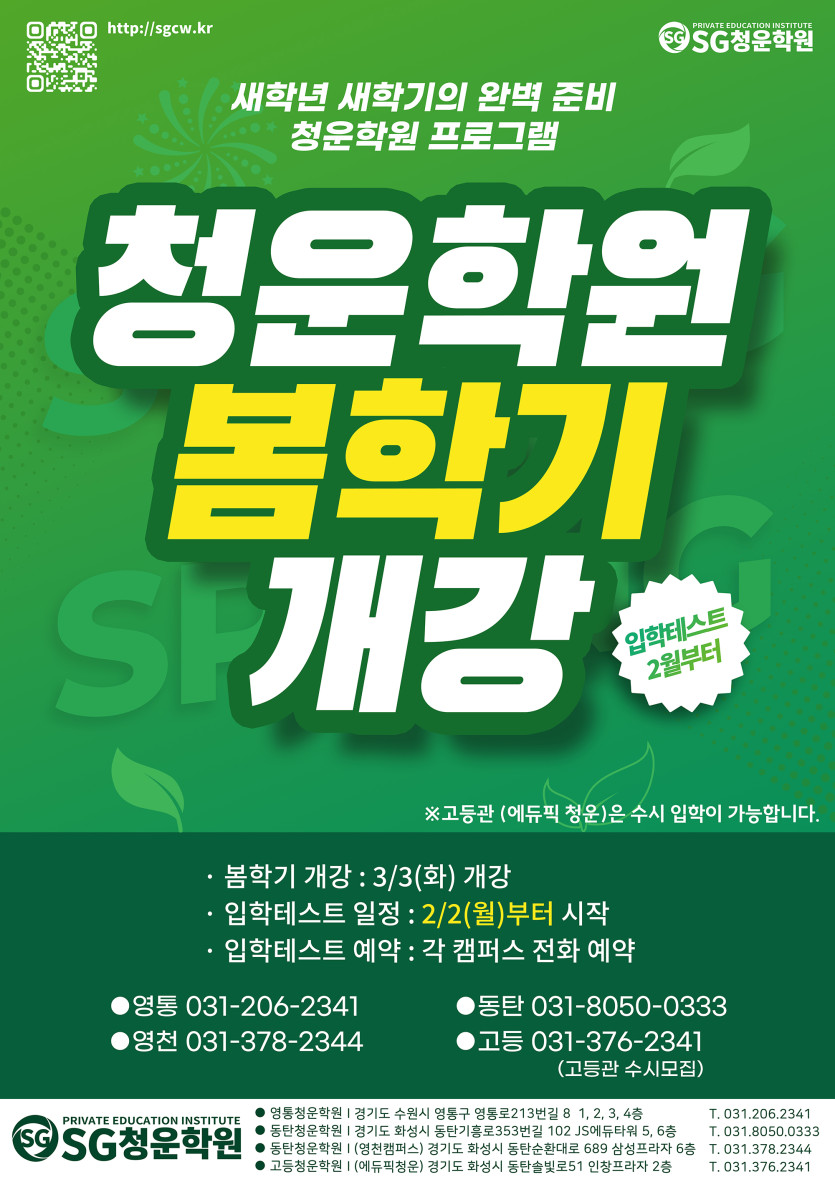 ● SG청운학원 26년 봄학기 개강 안내