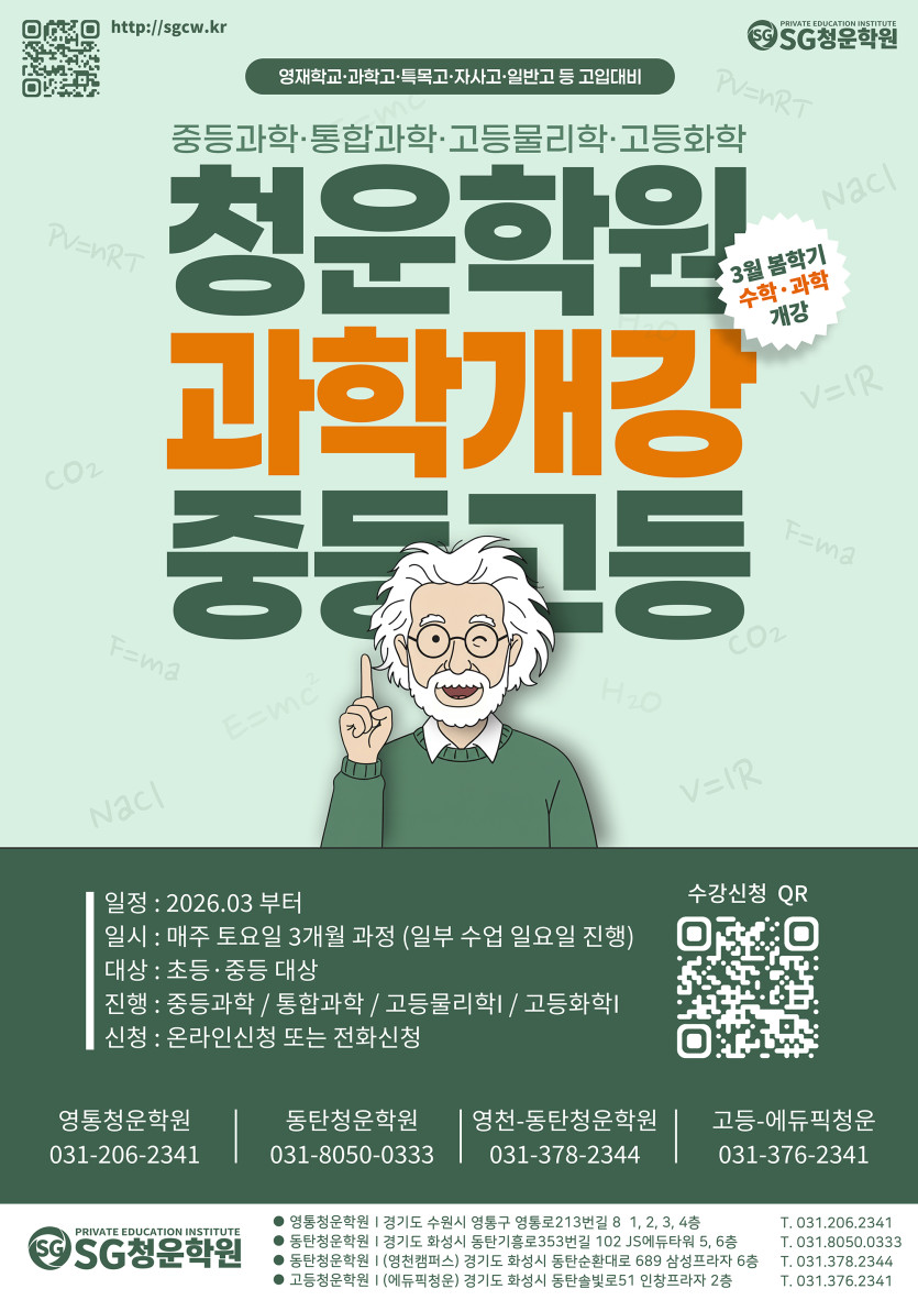2026 SG청운학원 봄학기 초·중 과학수업 안내 및 수강신청