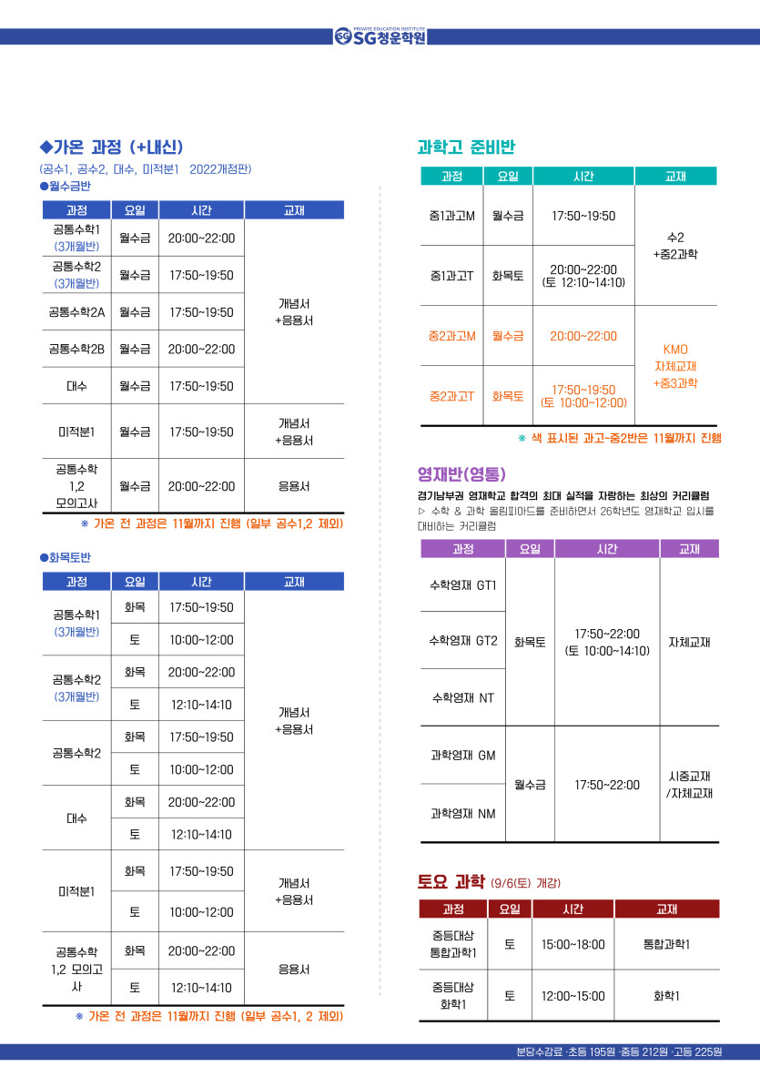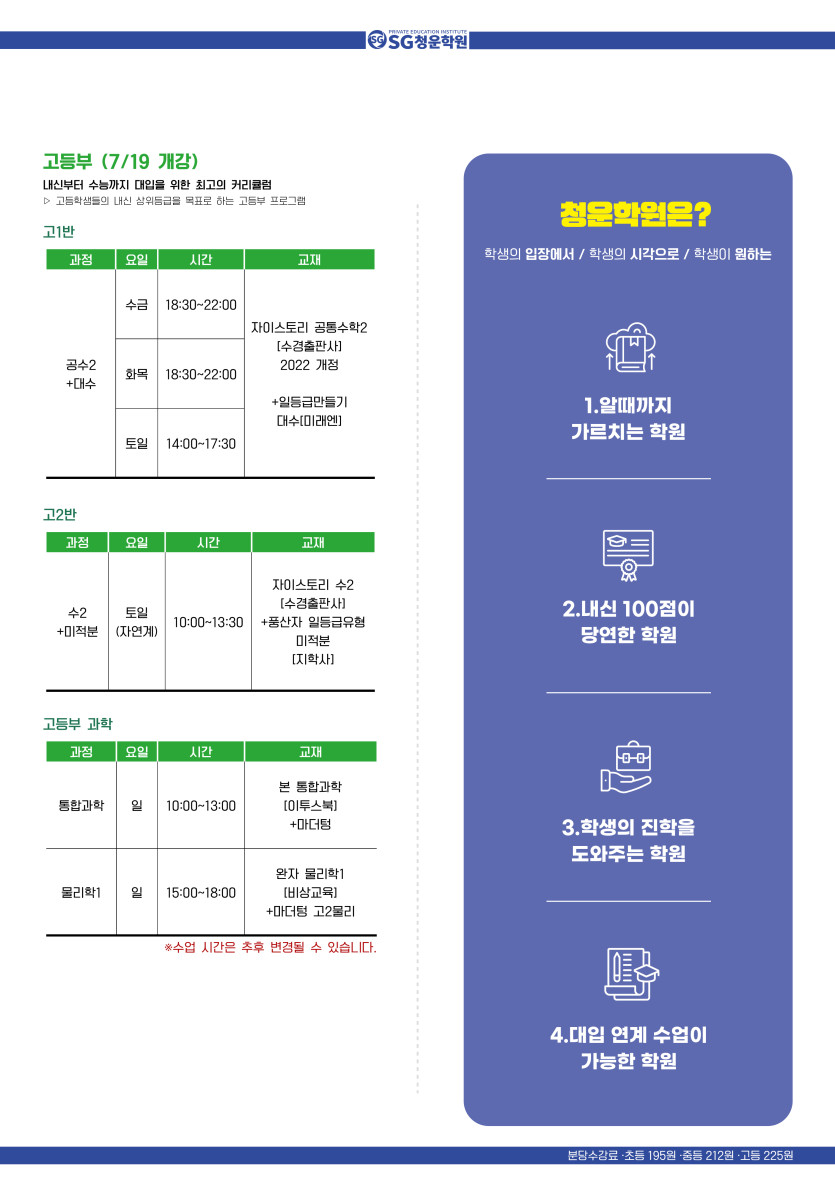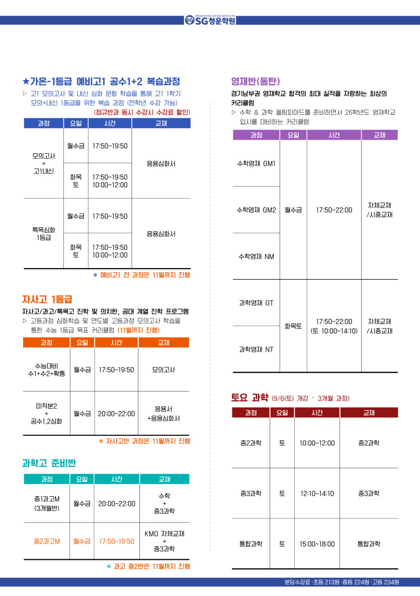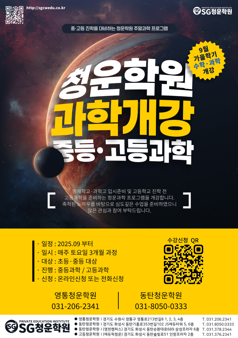 안녕하세요. 수학, 과학 입시 전문 SG청운학원 입니다.