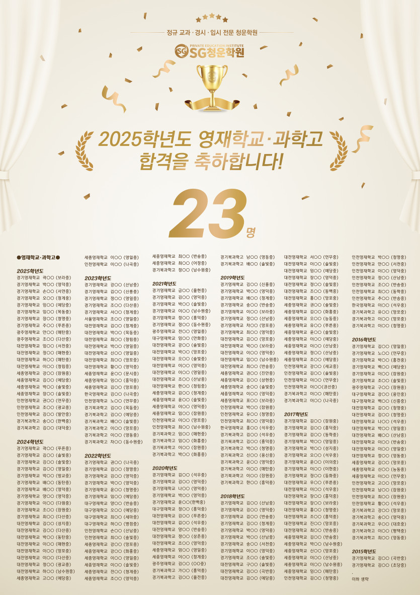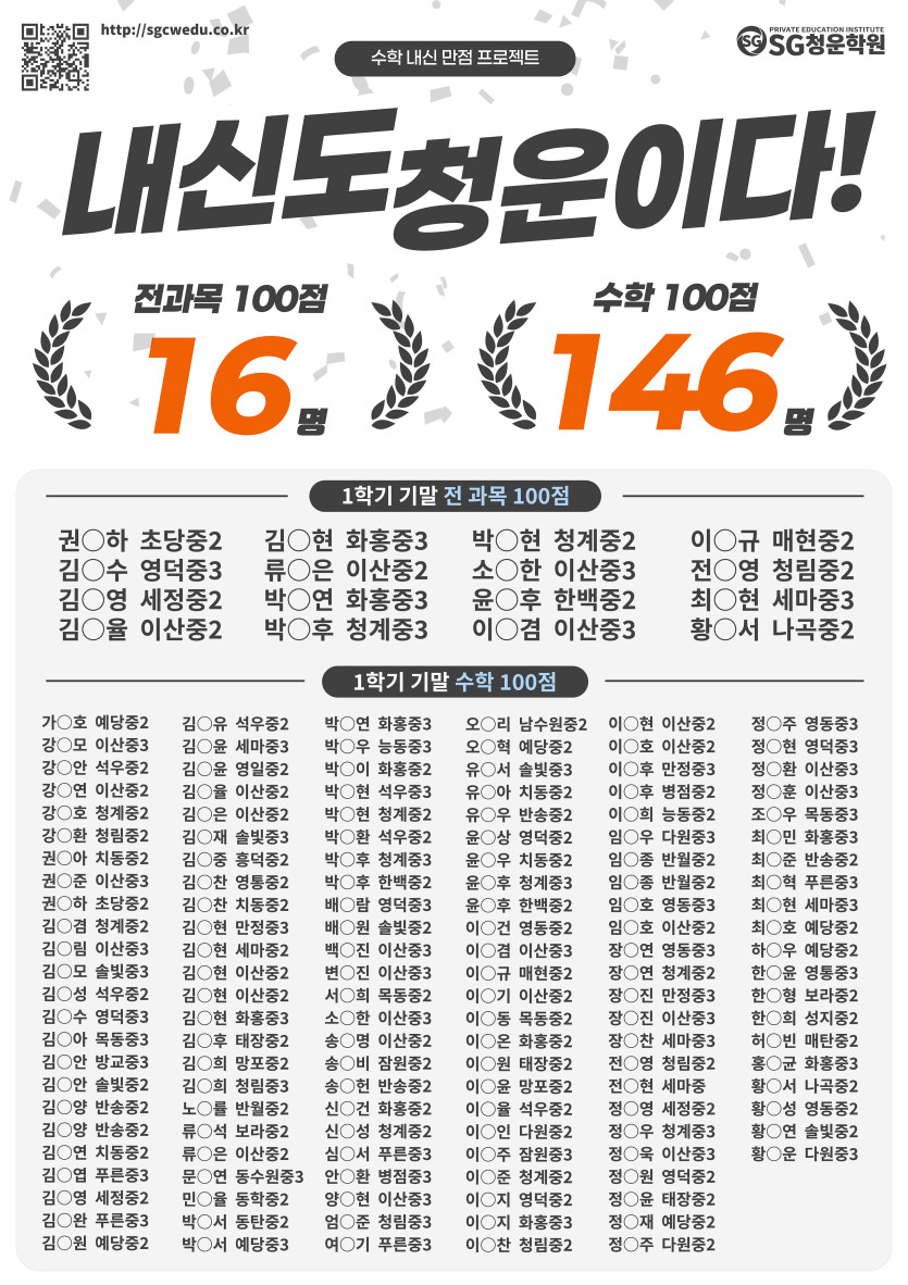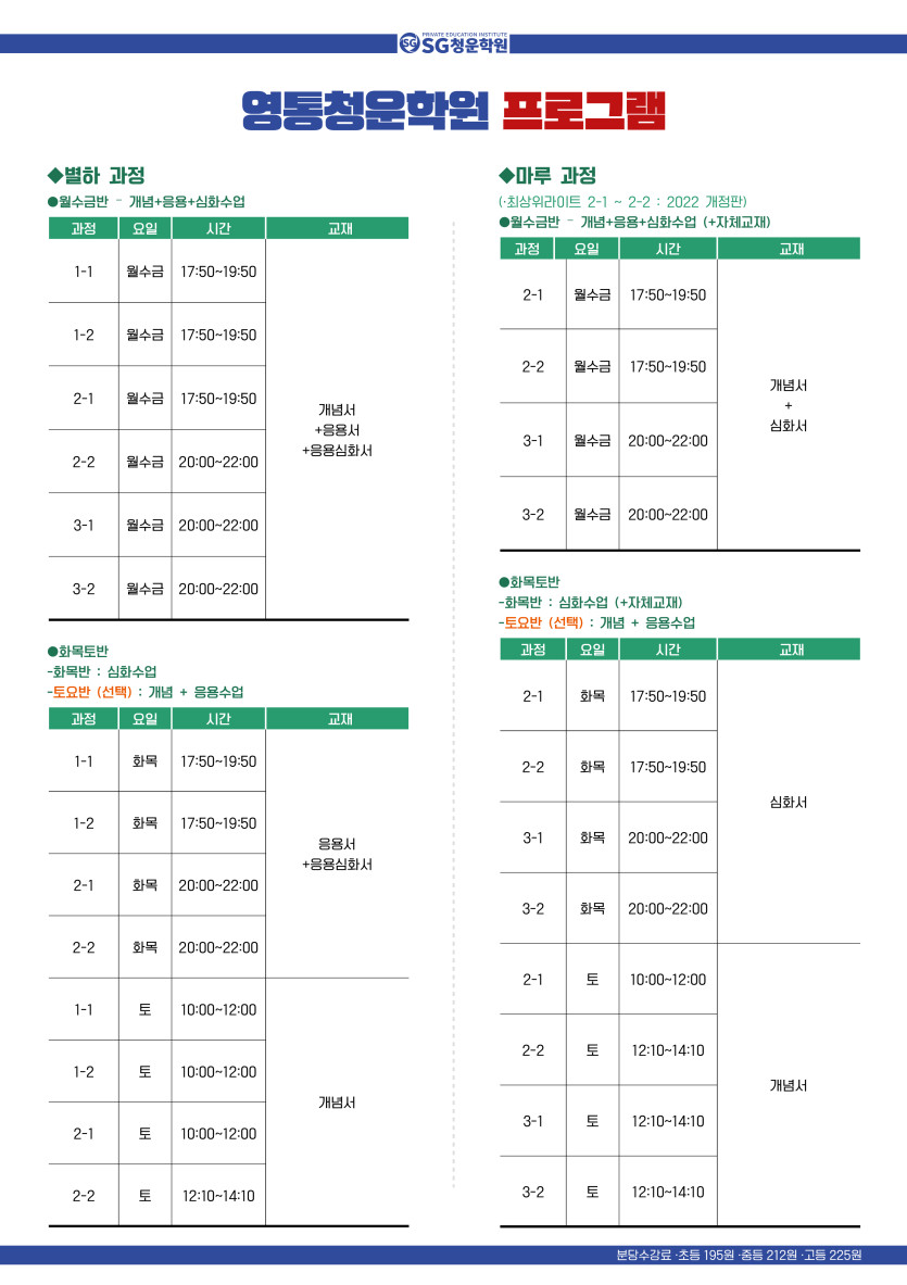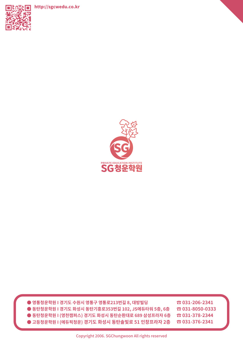 안녕하세요. 수학, 과학 입시 전문 SG청운학원 입니다.