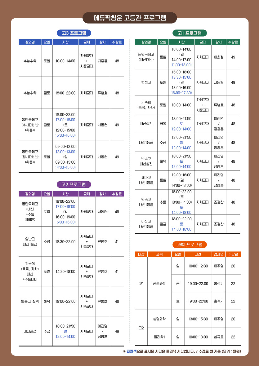 ※ 상기 일정 및 내용은 변동될 수 있습니다.