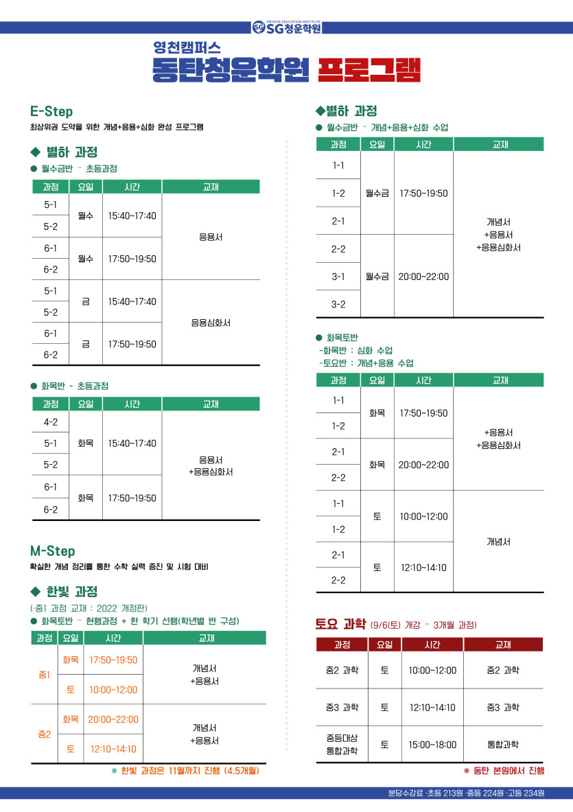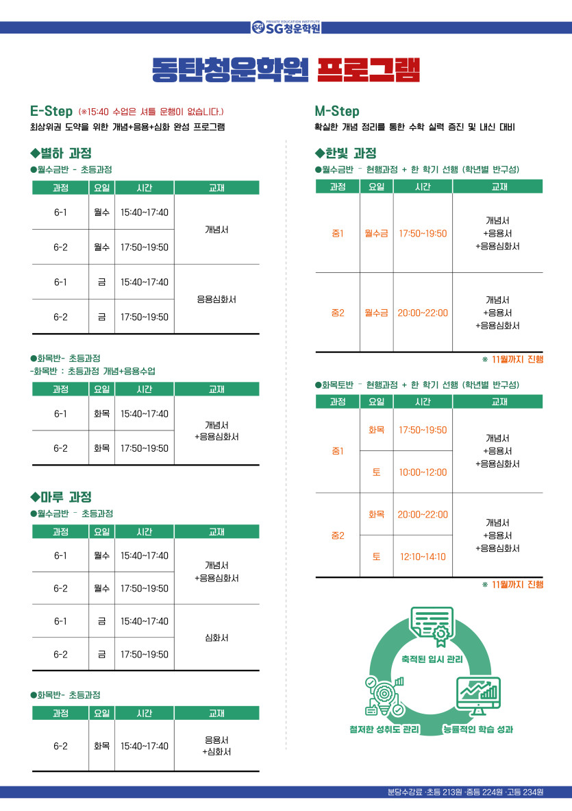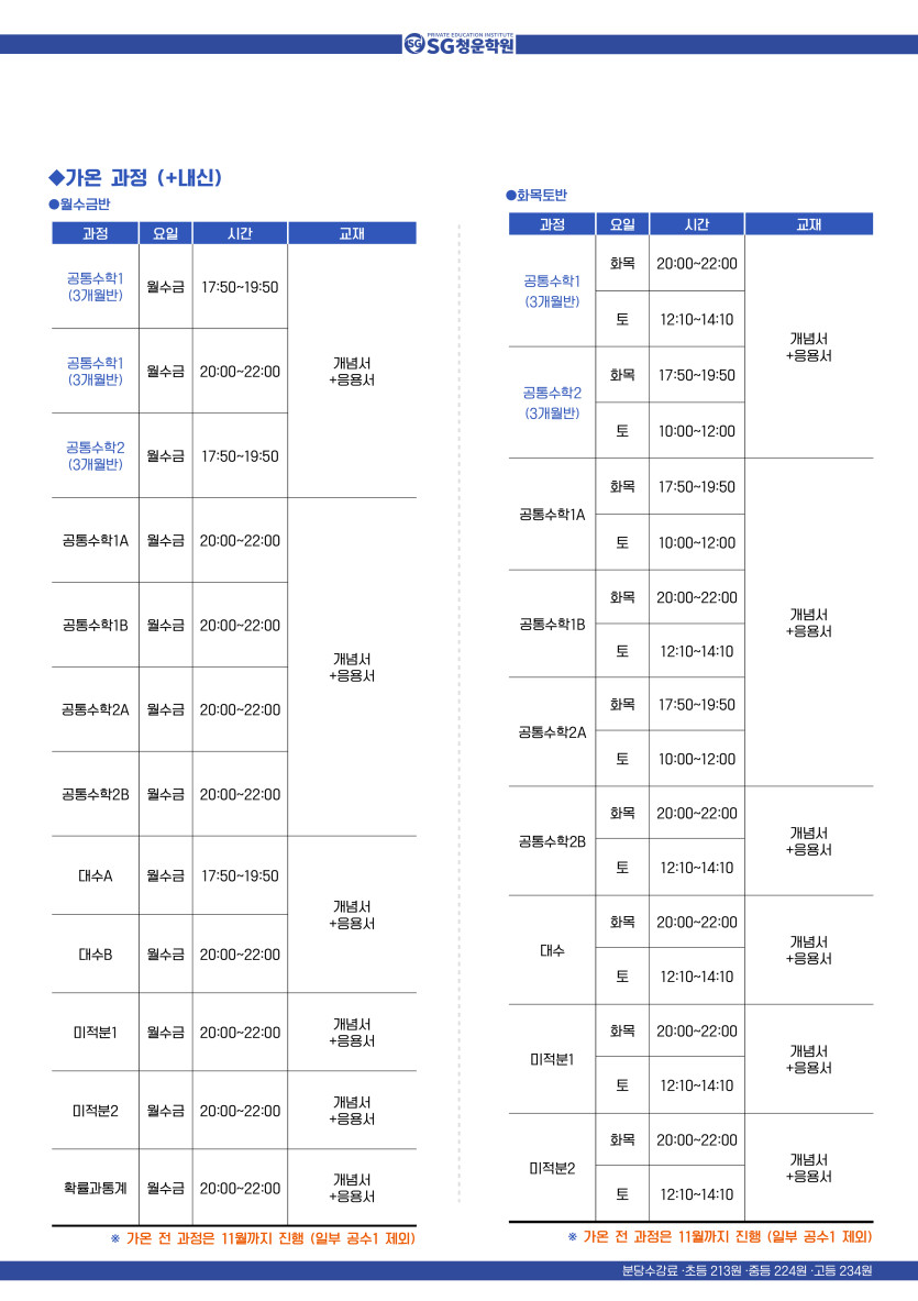 신규 학생들은 대수 또는 기하과정을 꼼꼼히 테스트 점검하여 본인의 학습 상황에 맞춰 반 배정 및 최상의 수업을 진행할 예정이오니 많은 관심과 참여를 바랍니다.