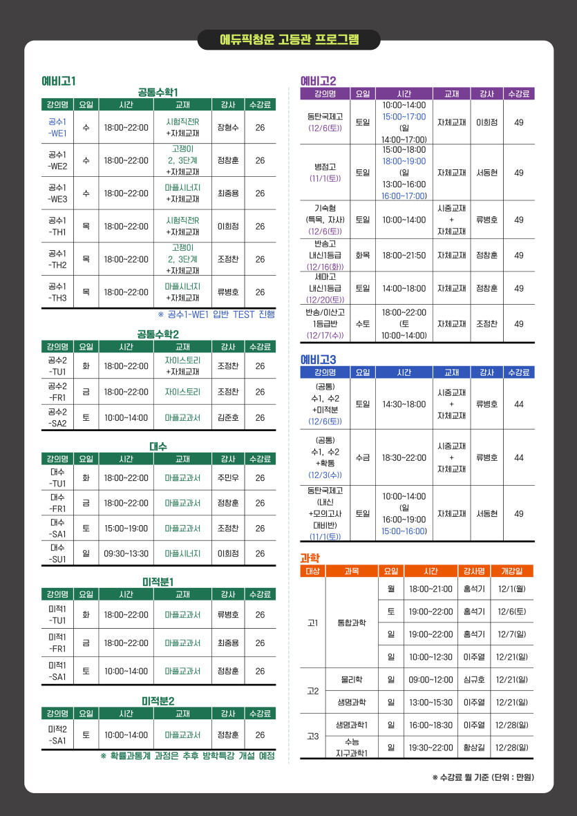 2025 에듀픽청운학원(고등관) 겨울학기 프로그램